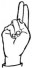 На ћирилици написано МИРЈАНА КРСМАНИЋ састоји се из 15 слова [?]. Исписано ћириличном једноручном азбуком за глувонеме: